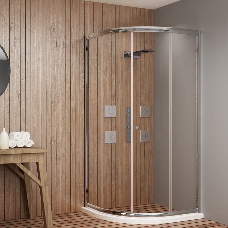 As the name implies, a pentagon-shaped shower enclosure is a cubicle with five sides. Just like a regular pentagon, three of these are straight, and two sides are at an angle. These shower enclosures are typically designed to fit into a corner of the bathroom. They have a hinged door connected to a fixed panel. Usually, these doors have a smaller turning radius, so these shower enclosures can be seamlessly used in smaller bathrooms as well.
